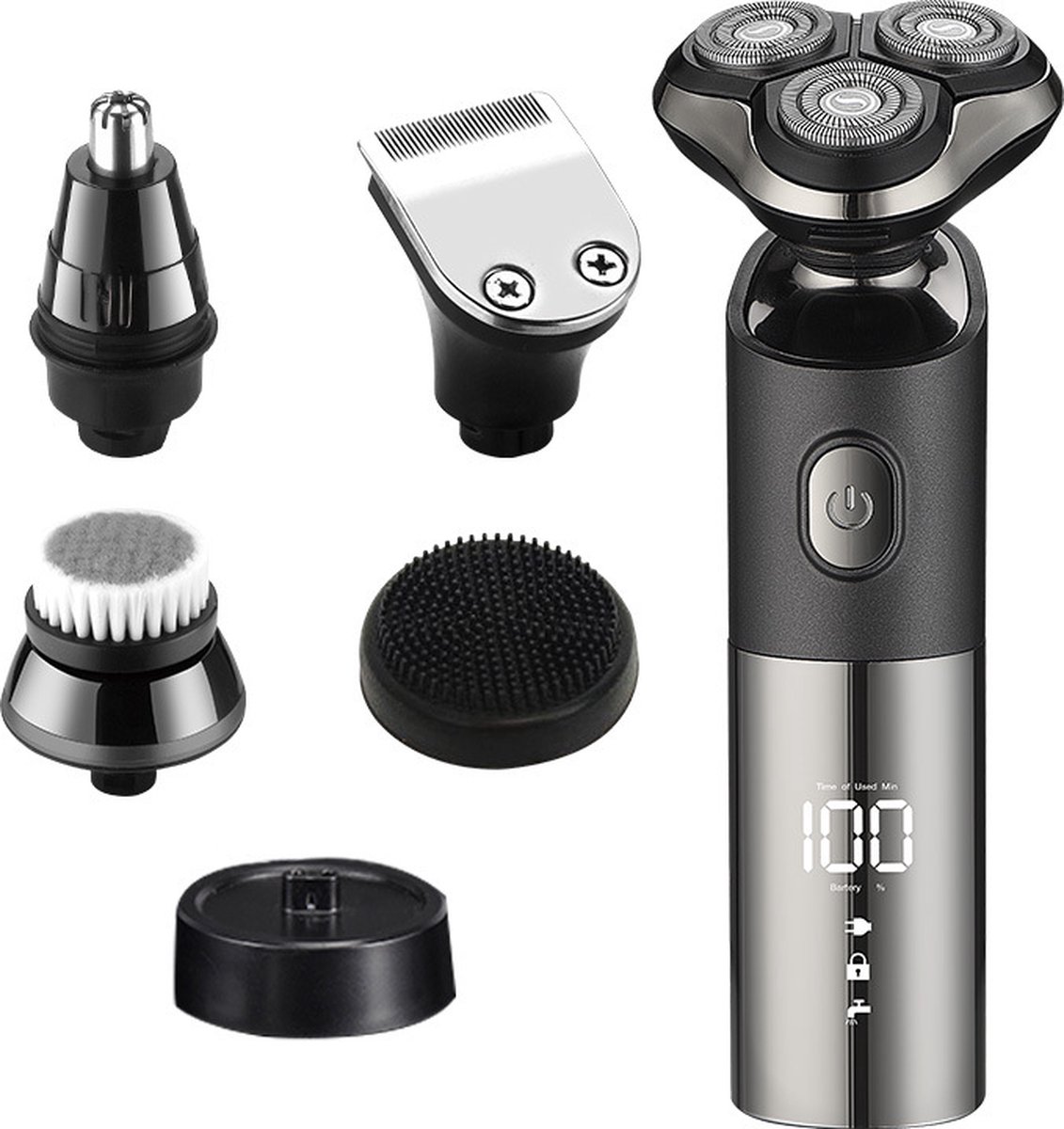 - Vijf-in-1 multifunctioneel ontwerp voor scheer- en trimwerk