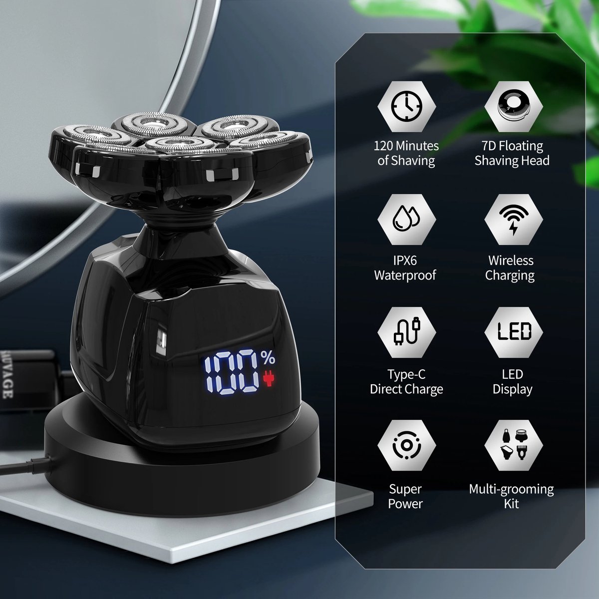 - 6-in-1 Scheerapparaat met 7D scheerkop en flexibele scheerkoppen