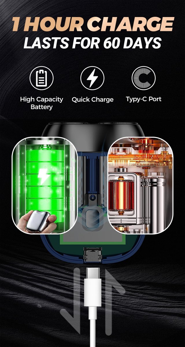 Geen gedoe meer met vervangbare batterijen. Laad de trimmer eenvoudig op via USB, of dat nu met je powerbank, wandlader of auto USB-poort is. Met een volledige oplaadtijd van slechts 1 uur geniet je tot wel 60 minuten lang van moeiteloos trimmen. Altijd klaar voor gebruik en perfect voor onderweg.