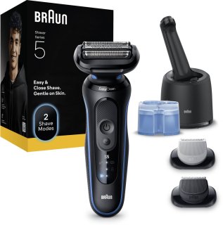 Ontdek een moeiteloze scheerbeurt met het Braun Series 5 elektrisch scheerapparaat. Ontworpen voor mannen die een snelle, effectieve en huidvriendelijke scheerervaring willen. Dankzij de 3 flexibele scheerbladen, instelbare scheerstanden en het krachtige SmartCare 4‑in‑1 reinigingsstation ziet je scheerapparaat er als nieuw uit — elke keer weer.