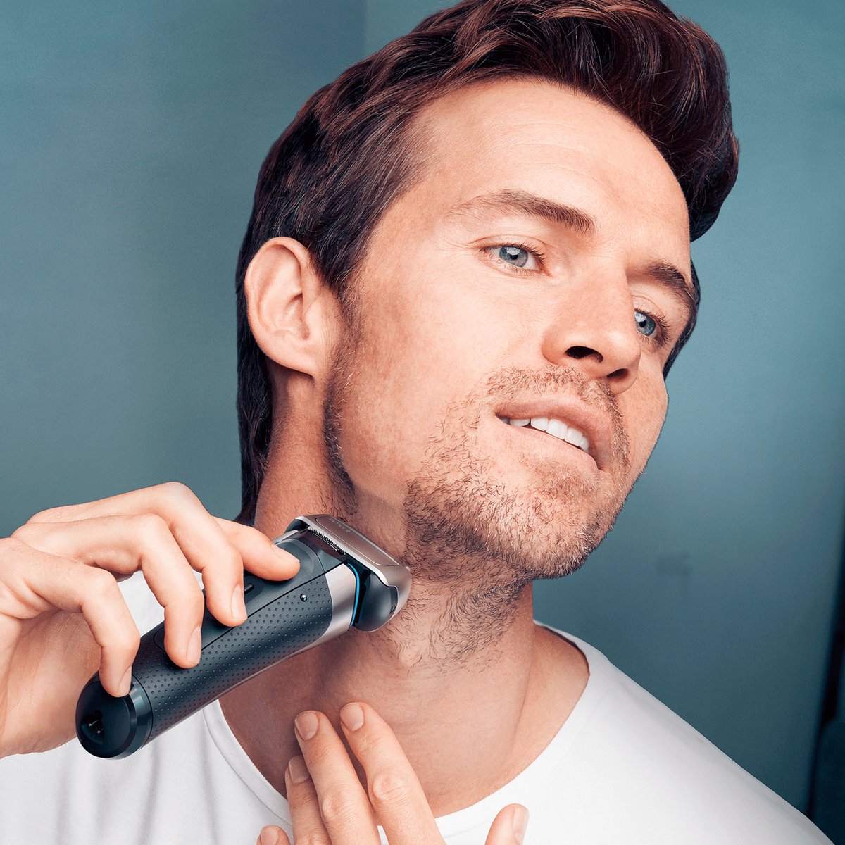 - Droog of nat scheren: Of je nu snel over je gezicht scheert of liever onder de douche, dit waterproof apparaat maakt het mogelijk. Gebruik indien gewenst scheerschuim of gel voor een fris en verkwikkend gevoel.
