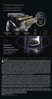 - 5+1 gesynchroniseerde scheerelementen: Direct&Cut scheerblad, ProTrimmer, huidverzorgende OptiFoil, beschermende SkinGuard en titanium-gecoate ProLift scheerblad.