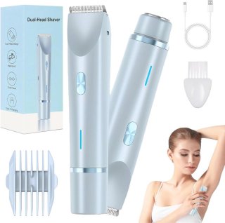 - 2‑in‑1 ontwerp met dubbel scheerhoofd: scheren en trimmen in één apparaat voor precieze verzorging van gevoelige zones.