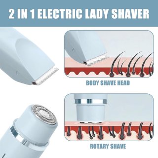 Ontdek het compacte en veelzijdige 2‑in‑1 scheerapparaat voor dames: ontworpen voor verzorgde en gladde resultaten op gezicht én lichaam. Dankzij het dubbele scheerhoofd kun je moeiteloos scheren en trimmen van bikinizone, oksels en benen — ideaal voor vrouwen en meisjes die een huidvriendelijke en betrouwbare oplossing zoeken.