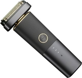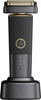 - Dubbele gouden titanium folies — hypoallergeen en zacht voor de huid, met geïntegreerde trimmer voor lang haar.