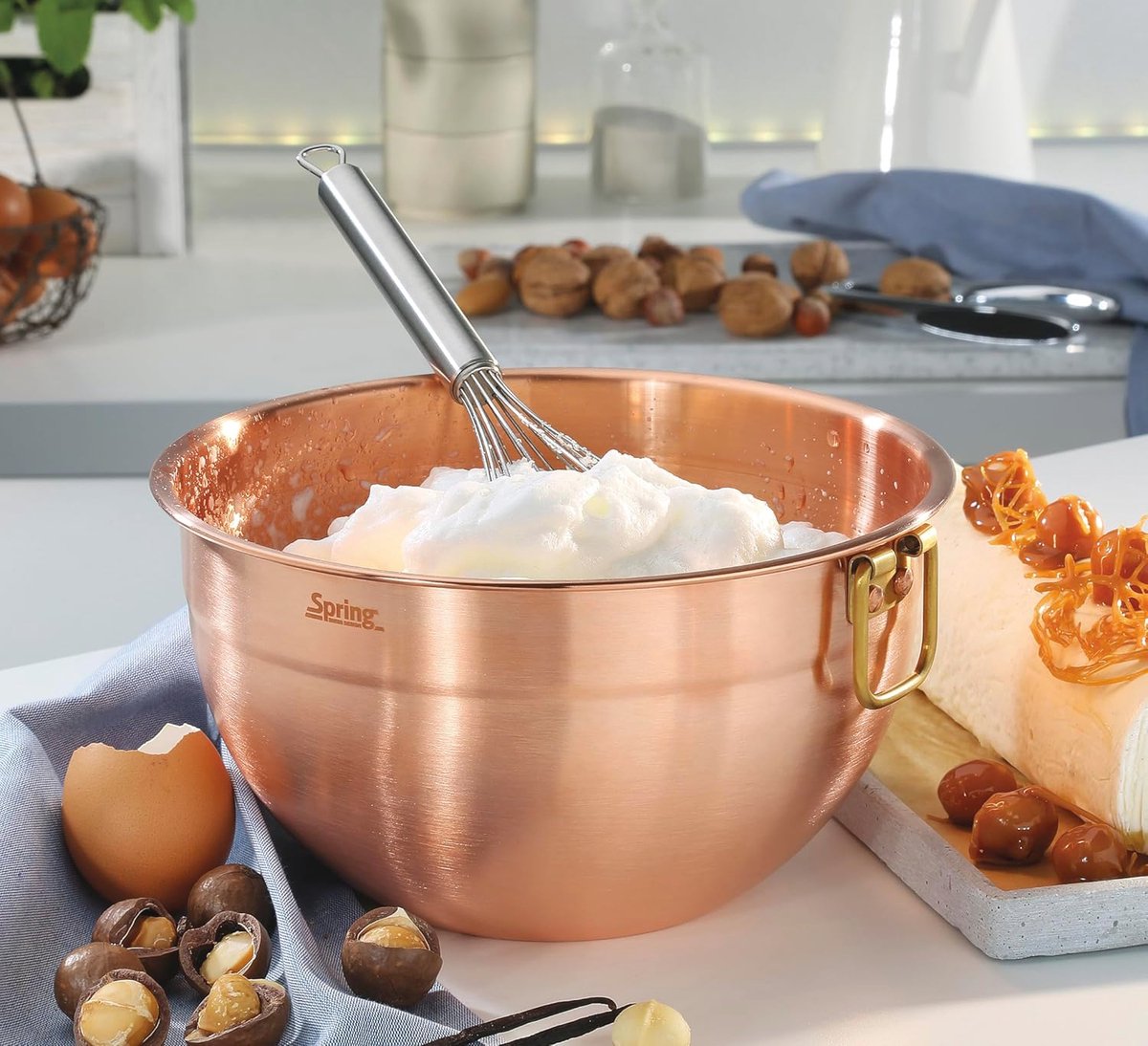 Deze veelzijdige koperen kom is ideaal voor een breed scala aan kook- en bakactiviteiten. Of u nu grote hoeveelheden beslag wilt mengen of ingrediënten wilt combineren, de ruime 28-liter inhoud biedt voldoende ruimte zonder dat u zich zorgen hoeft over spatten of morsen. Dankzij de duurzame constructie en het lichte gewicht (slechts 1 kg) is deze kom niet alleen functioneel maar ook gemakkelijk te hanteren.