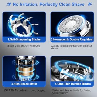 Of je nu snel 's ochtends je gezicht wilt bijwerken of een verzorgde look voor de avond wilt bereiken, dit mini scheerapparaat biedt een efficiënte en comfortabele ervaring. De combinatie van zelfslijpende messen en hoge toerentallen vermindert trekkerig gevoel en huidirritatie. Dankzij het compacte formaat neem je het gemakkelijk mee in je toilettas of koffer — een uitstekend cadeau voor Vaderdag, Moederdag, Kerstmis of als verrassing voor vrienden en familie.