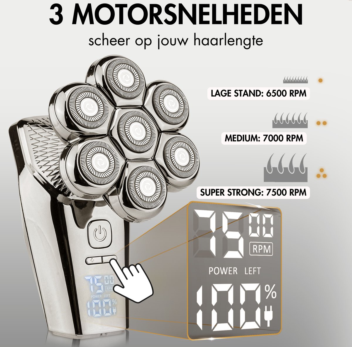 Personaliseer je scheerbeurt met drie snelheidsinstellingen (6.500 RPM, 7.000 RPM, 7.500 RPM). Of je nu dun, dik, gevoelig of zwaar groeiend haar hebt, de motorpast zich aan jouw huid en haartype aan voor een perfect resultaat zonder irritaties.