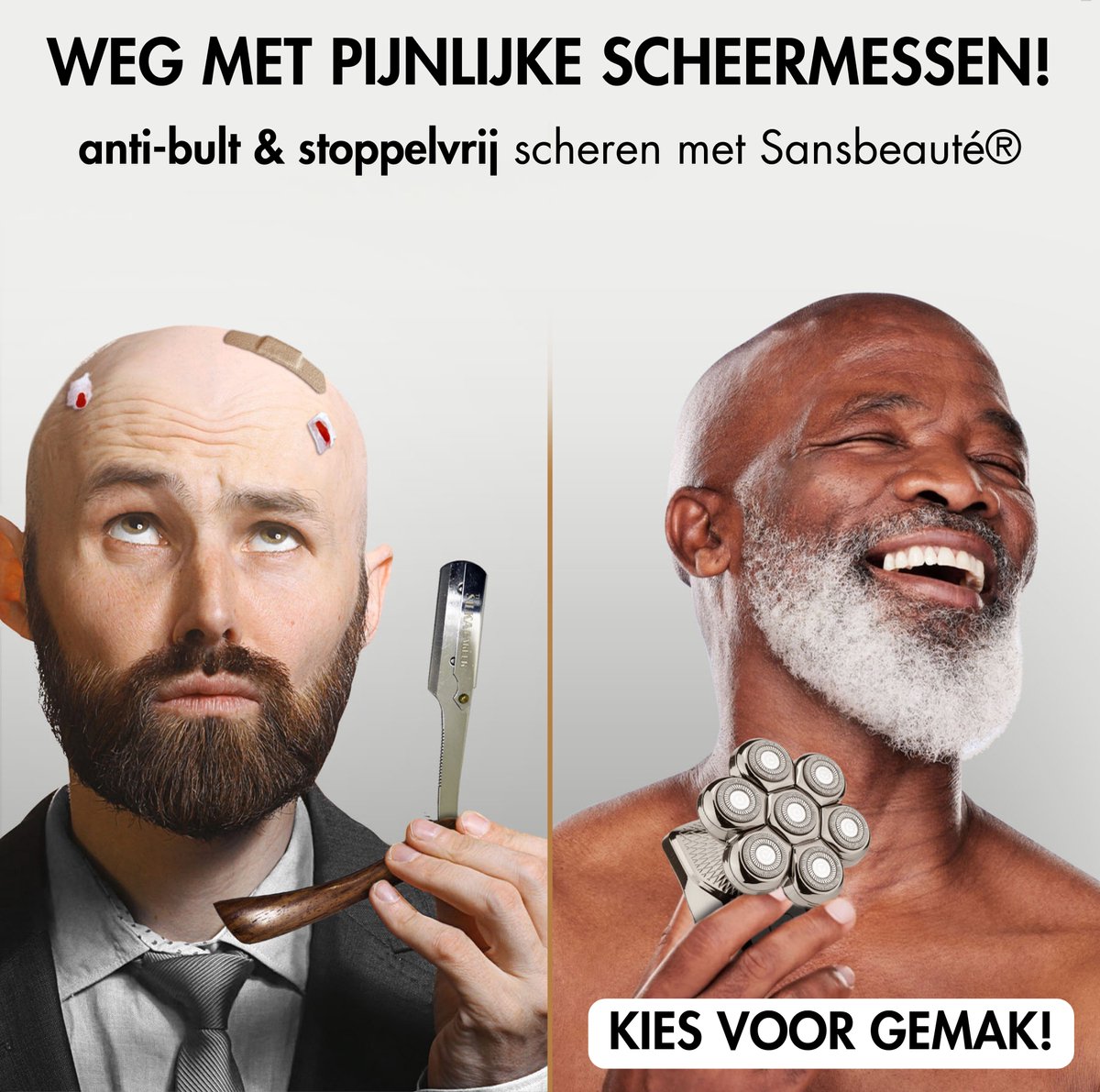 Ben je klaar met ongewenst haar, irritaties en botte scheermessen die wondjes achterlaten? Maak kennis met de revolutionaire Sansbeauté® SkullSharp PRO MAX, het all-in-one scheerapparaat dat jouw scheer- en trimervaring naar een hoger niveau tilt. Met zijn geavanceerde functies, stijlvolle design en gebruiksvriendelijkheid biedt dit apparaat jou een pijnloze, veilige en efficiënte scheerbeurt, zowel op je gezicht, hoofd als lichaam.