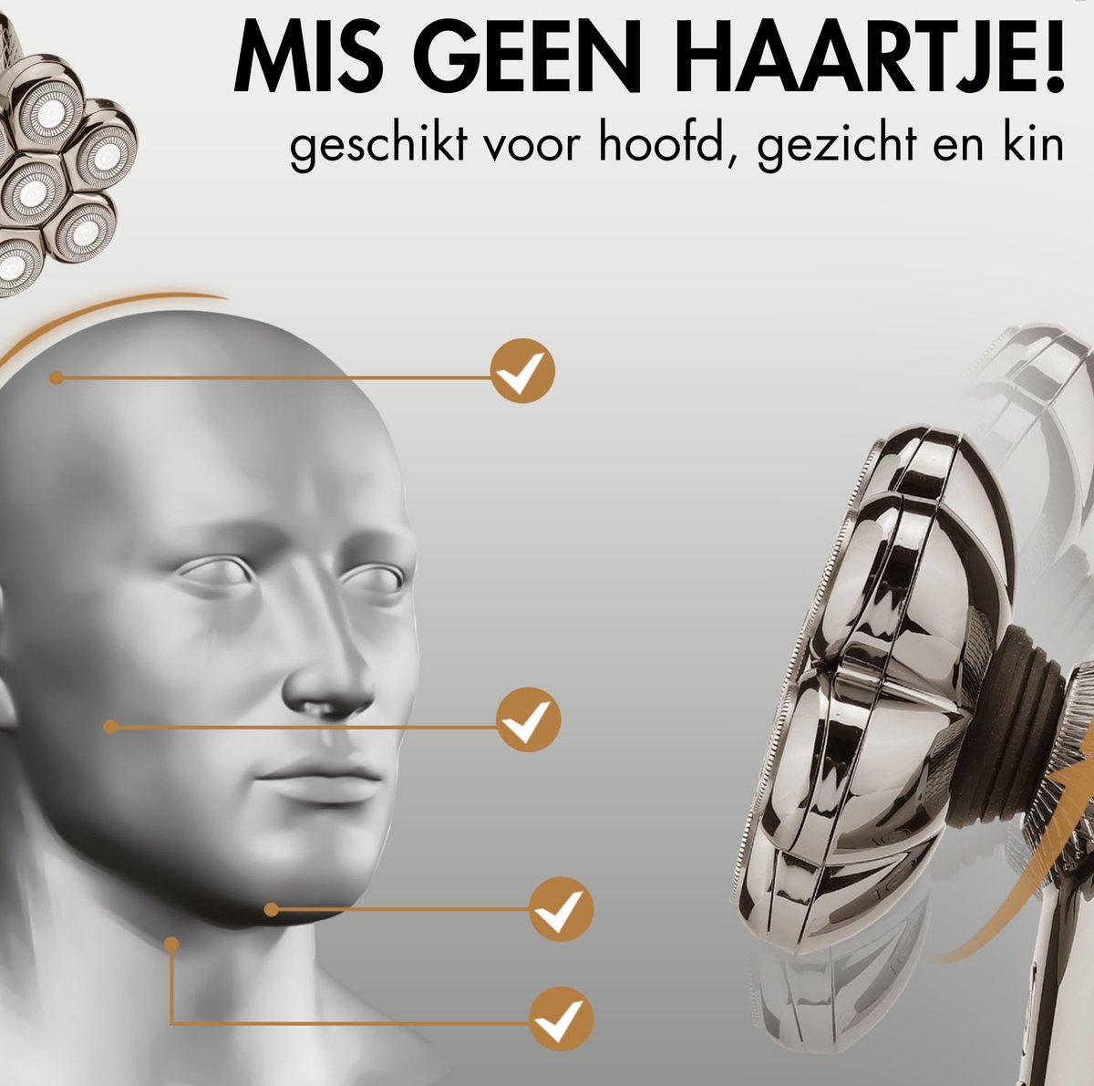 Dankzij de innovatieve ontwerptechnologie volgt het scheerapparaat perfect de contouren van je gezicht en hoofd. De zachte, gepatenteerde scheerbladen zorgen voor een gladde scheerbeurt zonder sneetjes of irritaties. Dit apparaat maakt scheren niet alleen comfortabel, maar ook een stuk veiliger dan traditionele scheermesjes.