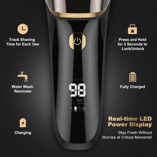 Het heldere LED-display toont de resterende batterijduur, de geschatte scheertijd en geeft meldingen zoals reinigingsherinnering en reisslot. Zo weet je altijd precies wanneer het apparaat opgeladen of schoongemaakt moet worden – ideaal voor reizigers en drukke ochtenden.