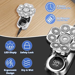 - 9D zwevend scheerhoofd – Past zich aan elke ronding van hoofd en gezicht aan voor een nauwkeurige, comfortabele scheerbeurt zonder trekken of huidirritatie.