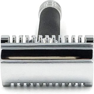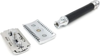 Ervaar een nauwkeurige, comfortabele scheerbeurt met dit elegante en robuuste 3-delige veiligheidsscheerapparaat. Het strakke chroom- en zwarte ontwerp combineert klassieke uitstraling met een serieuze snijkracht dankzij de open kam (3-stuks kamplaat zonder veiligheidsbar). Ideaal voor wie een diepe, gladde scheerbeurt wil en controle zoekt bij zware baardgroei.